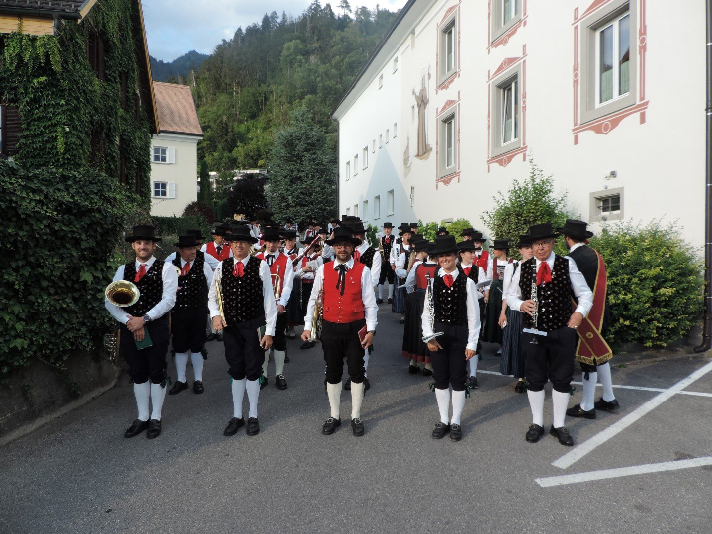Mit klingendem Spiel marschierten wir beim Festumzug von der Kirche in Nüziders zum Festzelt. Mit unseren Kameraden der Sonnenberger Harmoniemusik Nüziders und der Harmoniemusik Tschagguns bildeten wir eine Gemeinschafts-Musik mit ca. 65 Musikantinnen und Musikanten. Wir bedanken uns bei der Feuerwehr Nüziders für die Einladung. Es war uns eine Ehre dabei zu sein!